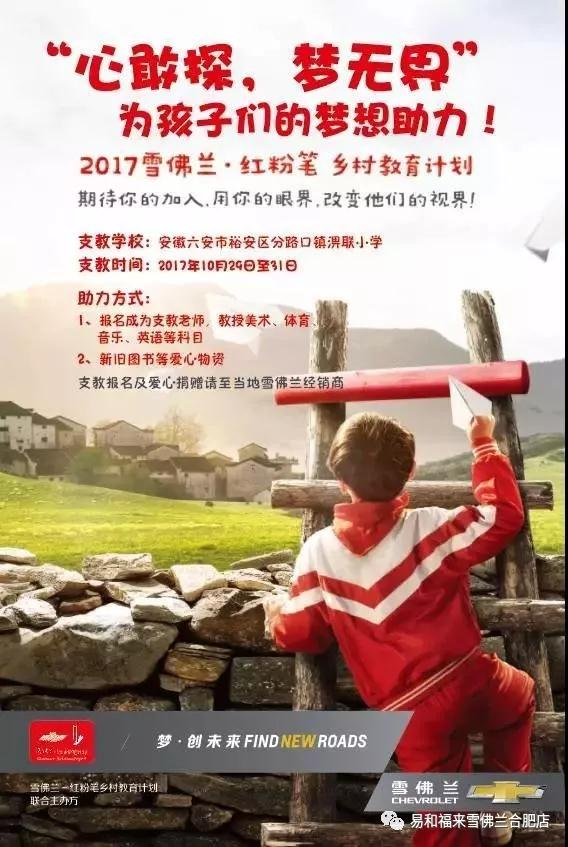 成為志愿者:如果您有教師資質(zhì),且精通體育、美術(shù)、英語(yǔ)、音樂(lè),雪佛蘭4S店報(bào)名加入雪佛蘭志愿者隊(duì)伍,實(shí)際為孩子們授課,讓愛更深的扎根。